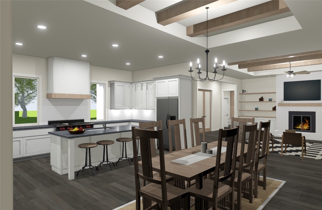 At the heart of the home is a kitchen that will capture your imagination — a generous, well-appointed space with abundant counter space, a massive island for gathering, and a farmhouse sink positioned beneath a window, offering charming views while you prep, cook, or linger over coffee.