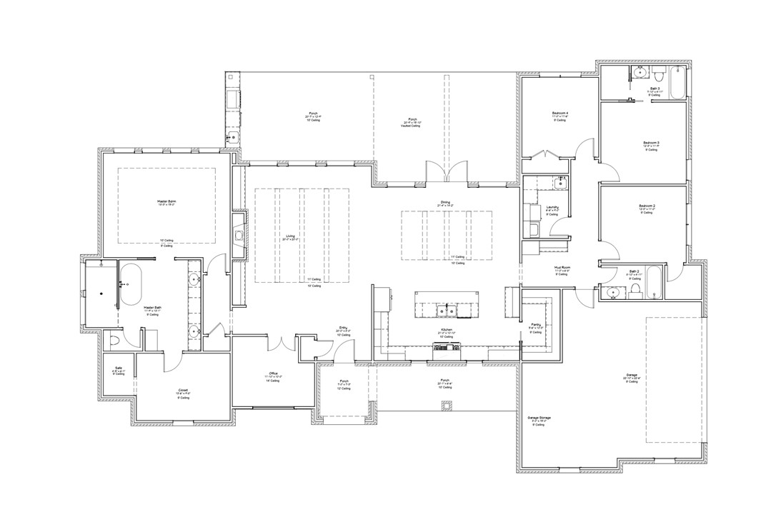 The large primary suite is a true retreat, featuring an oversized walk-in closet and a hidden room. The additional bedrooms are thoughtfully designed for comfort and privacy, while the expansive laundry room adds everyday practicality without sacrificing style.