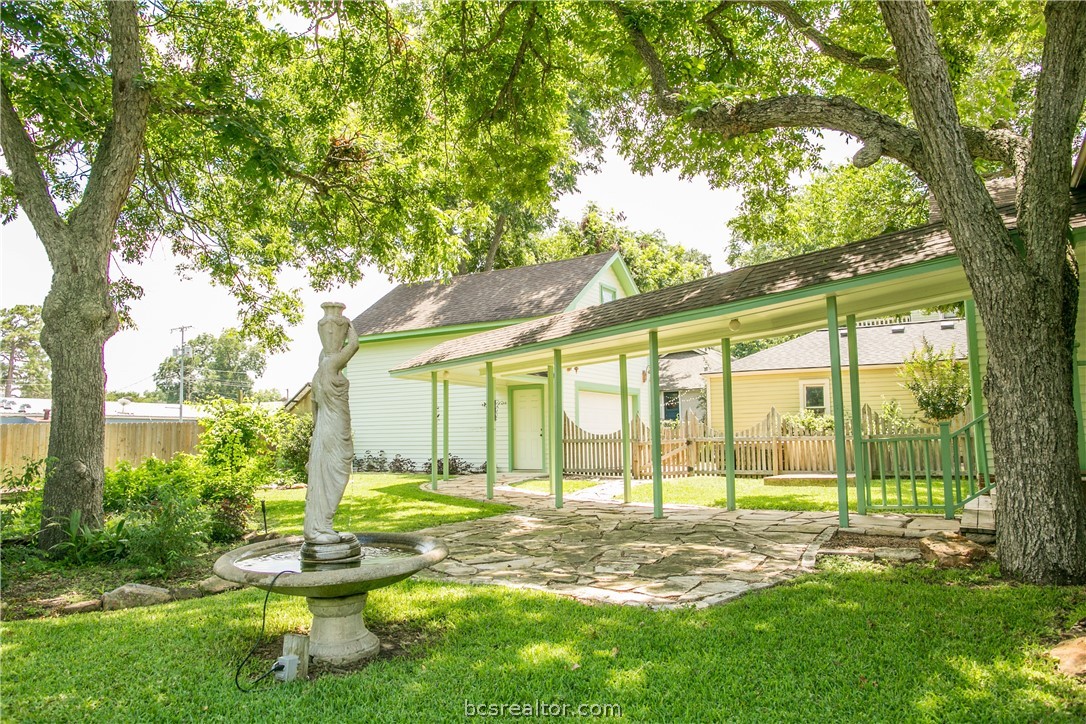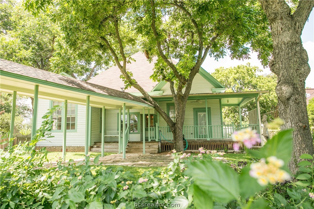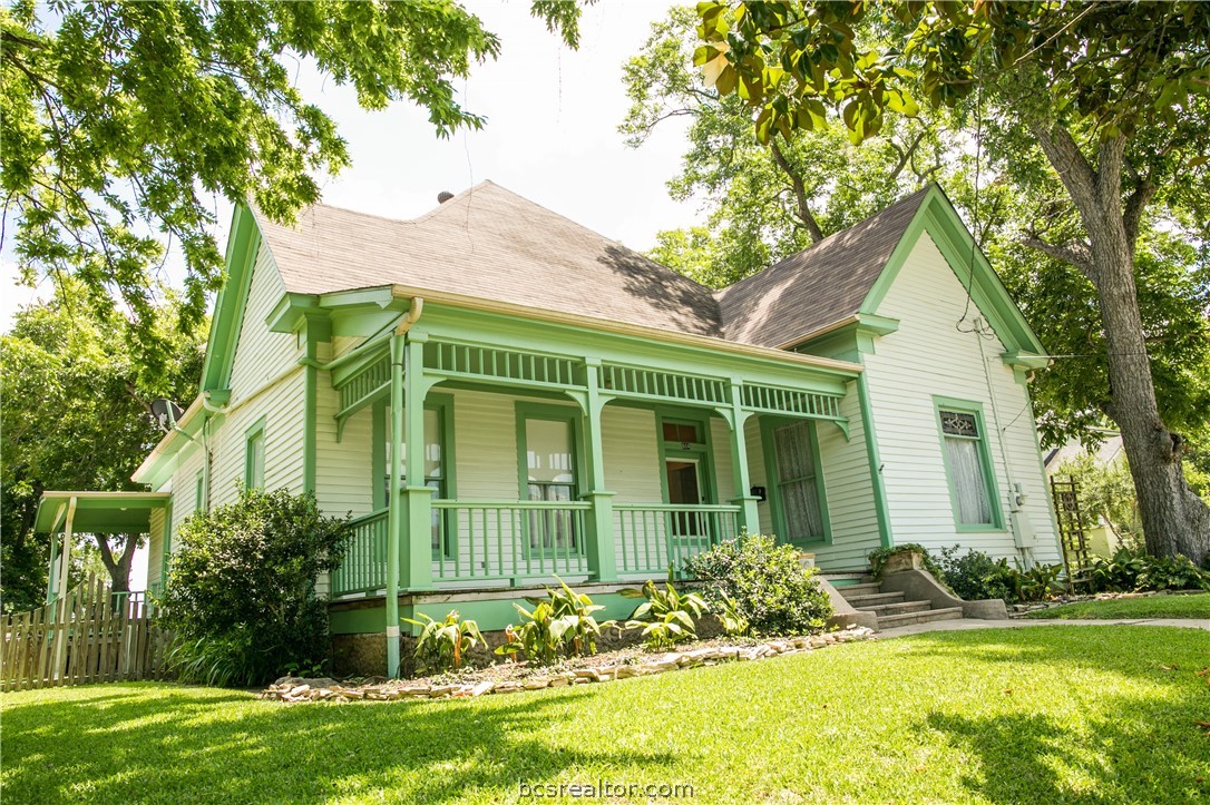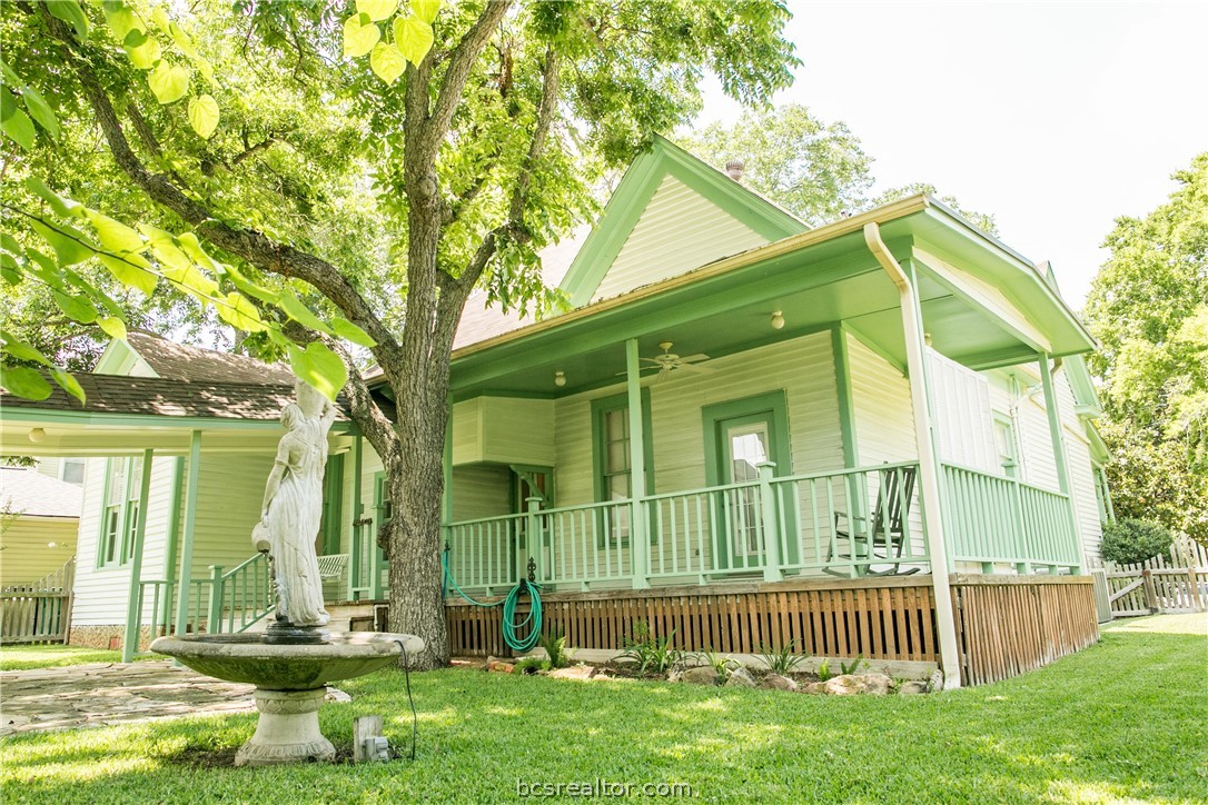 Lovely Folk Victorian built in 1885 close to downtown! This home has a lot of original charm with long leaf pine floors, bead board, original antique hardware and 11 ’ high ceilings. A wonderful central hall welcomes you in from the front porch. Living room has a lovely stacked rock fireplace and leads into the dining room and from there the kitchen. Kitchen was remodeled with custom cabinetry and granite countertops. Bedrooms are spacious with great natural light. The primary bedroom has full bathroom with tile walk in shower and large closet. Guest bathroom with claw foot tub can be accessed off the central hall or through the hall on way to the 3rd bedroom. The back yard is peaceful and serene spot with a lovely wrap around porch, plush yard with soothing water fountain and greenhouse with irrigation and electricity. The rebuilt detached 2 car garage is connected to the back porch with covered walkway and has craft room upstairs that could easily convert into guest quarters.