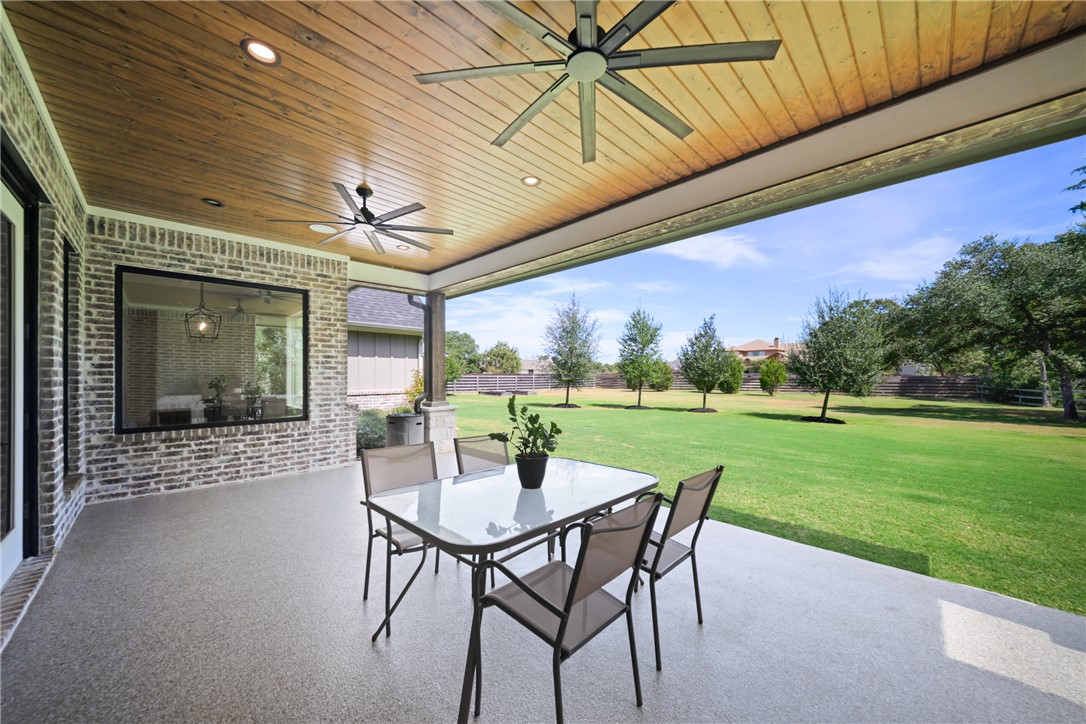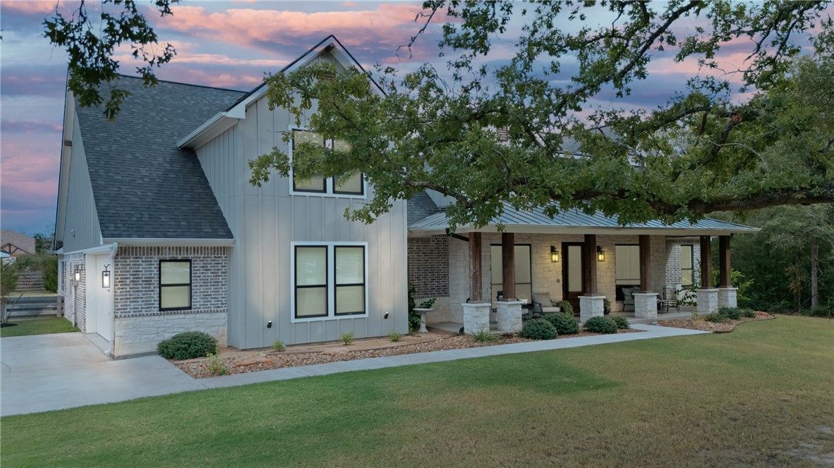 Immaculately maintained and thoughtfully designed, 6047 Rain Meadow blends everyday comfort with a touch of luxury, on nearly 2 acres in sought-after Winding Creek Estates. Tucked behind the trees, this home is private and peaceful, yet only minutes from the convenience of College Station. With 5 bedrooms, 4.5 baths and an office, it’s the perfect home for anyone who wants style and space. Step inside the open-concept layout with living room, dining area and kitchen flowing seamlessly together. The kitchen is a standout with stainless steel appliances, 48” Thermador gas rangetop, double ovens, and large island. A coffee bar connects to a dream-worthy working pantry with plenty of storage. Oversized windows flood the living room with natural light, while wood burning fireplace and hand-scraped hardwood floors keep it warm and inviting. Retractable mount in fireplace allows for comfortable tv viewing. Primary suite is a true haven, with a spacious closet connecting directly to the laundry room. The backyard has space for a pool, while the shed holds all your outdoor toys. Epoxy flooring in the garage, shed and all porches, plus a 220-volt outlet in the garage make this home ready for any project. This is the retreat you’ve been looking for!