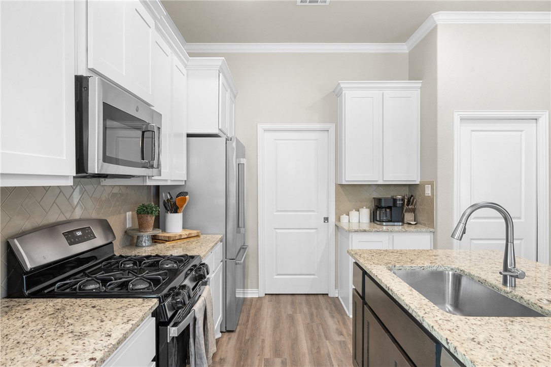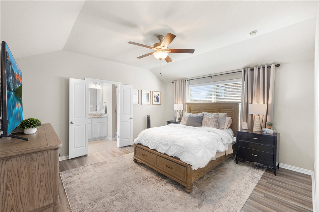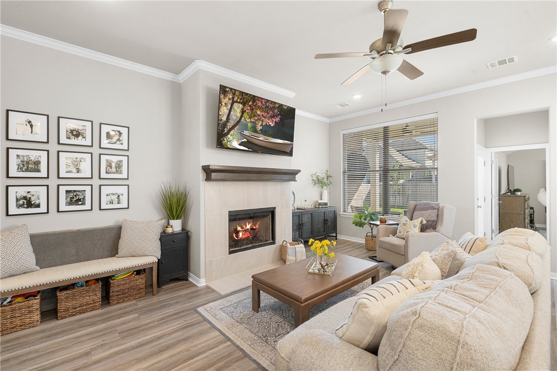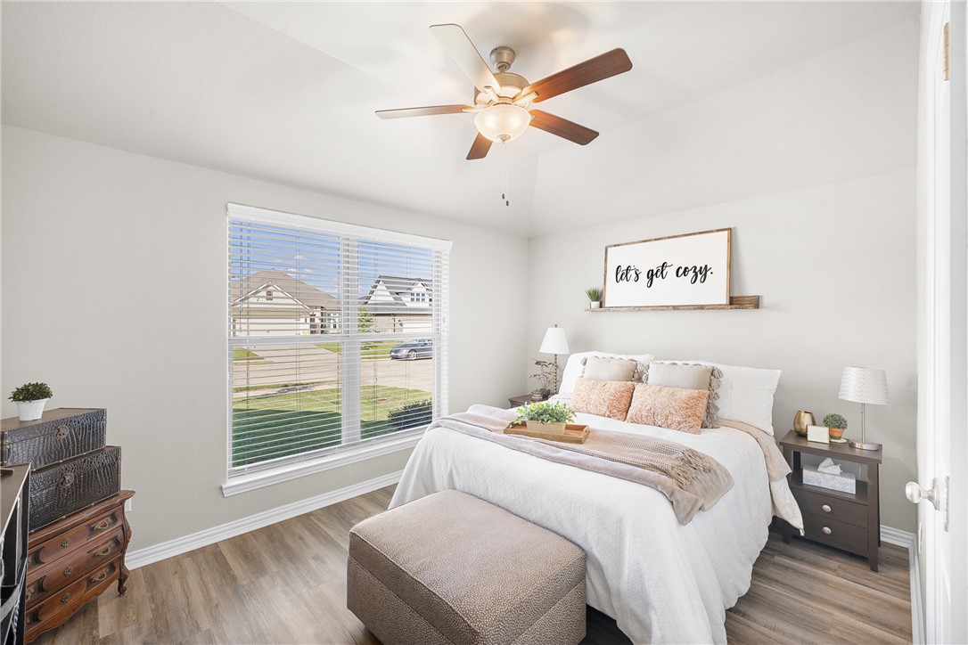 Brand new roof! A true standout in both style and construction, this beautifully crafted 4 bedroom, 2 bath home offers a harmonious blend of elevated design and exceptional quality. Built in 2022 by Kaleo Homes, it stands out with full brick exterior on all four sides, no carpet throughout, and a split floor plan that thoughtfully places the primary suite away from the other bedrooms. The open-concept living area is anchored by a gas fireplace, creating a warm and inviting space to the kitchen island and dining area ideal for both quiet evenings and entertaining. Just beyond, the extended covered patio invites outdoor living, complete with a dedicated natural gas line for hosting gatherings with ease. Additional highlights include a tankless water heater, Ethernet drops in each room, and pre-wired security system. Southern Pointe residents enjoy a suite of amenities including a resort-style pool, sport courts, dog parks, and walking trails, all just minutes from Highway 6 providing easy access to all College Station has to offer. Book a tour today!