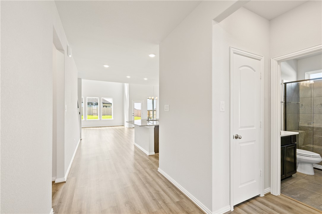 Discover Southern Pointe, a master-planned community in South College Station offering suburban charm with quick access to shopping, dining, parks, trails, and Texas A&M. This NEW construction 2-story Magnolia plan features 4 bedrooms, 3 baths, a 2-car garage, and an open layout designed for modern living. The stylish kitchen boasts granite countertops, upgraded cabinets, stainless steel appliances, and a gas cooktop. Upstairs, a spacious game room adds flexibility for work or play. Luxury vinyl plank flooring flows through the main areas, while tile in the bathrooms and laundry offers durability where it's needed most. The light-filled primary suite includes a large closet, soaking tub, and sleek glass-enclosed shower. Set on a corner lot, the oversized backyard offers space to relax and entertain. With resort-style amenities and inviting green spaces throughout, Southern Pointe is a place to feel at home—this move-in ready home is waiting for you!