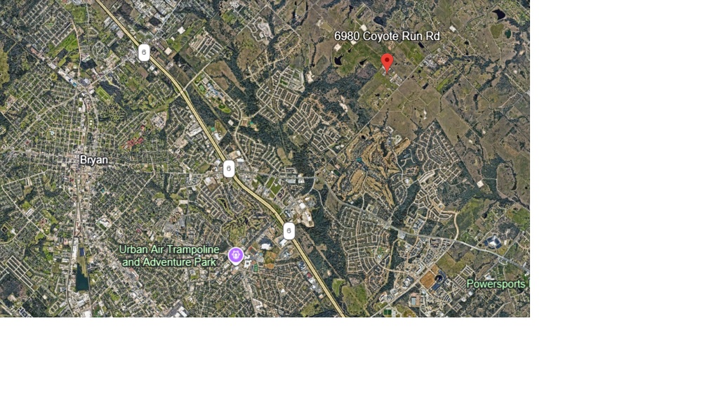 • Directions: Take the exit toward FM-1179/Briarcrest Drive from Hwy 6N/TX-6 N. Continue on N Earl Rudder Fwy/Texas 6 Frontage Rd. N. Take FM1179 to Coyote Run Rd. and turn left. Property is located 0.2 miles on the left side of Coyote Run.
