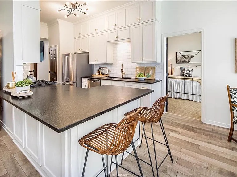Welcome to 701 Putter Court, a beautifully updated home tucked away at the end of a quiet cul-de-sac in the highly desirable Pebble Creek neighborhood. This spacious 4-bedroom, 3-bathroom residence offers 2,525 square feet of living space on a generous 0.36-acre lot, perfectly blending comfort, style, and functionality. The thoughtfully designed layout features a versatile three-way split floor plan, including a large upstairs bedroom with a full bath and bonus space for guests, in-laws, or a private media room. Located just steps from Pebble Creek Park and a short walk to Pebble Creek Elementary, this home is in a family-friendly area with access to top-rated schools, scenic walking trails, and community amenities. With its blend of modern finishes, flexible layout, and unbeatable location, 701 Putter Court is a rare gem in one of College Station’s most beloved neighborhoods.