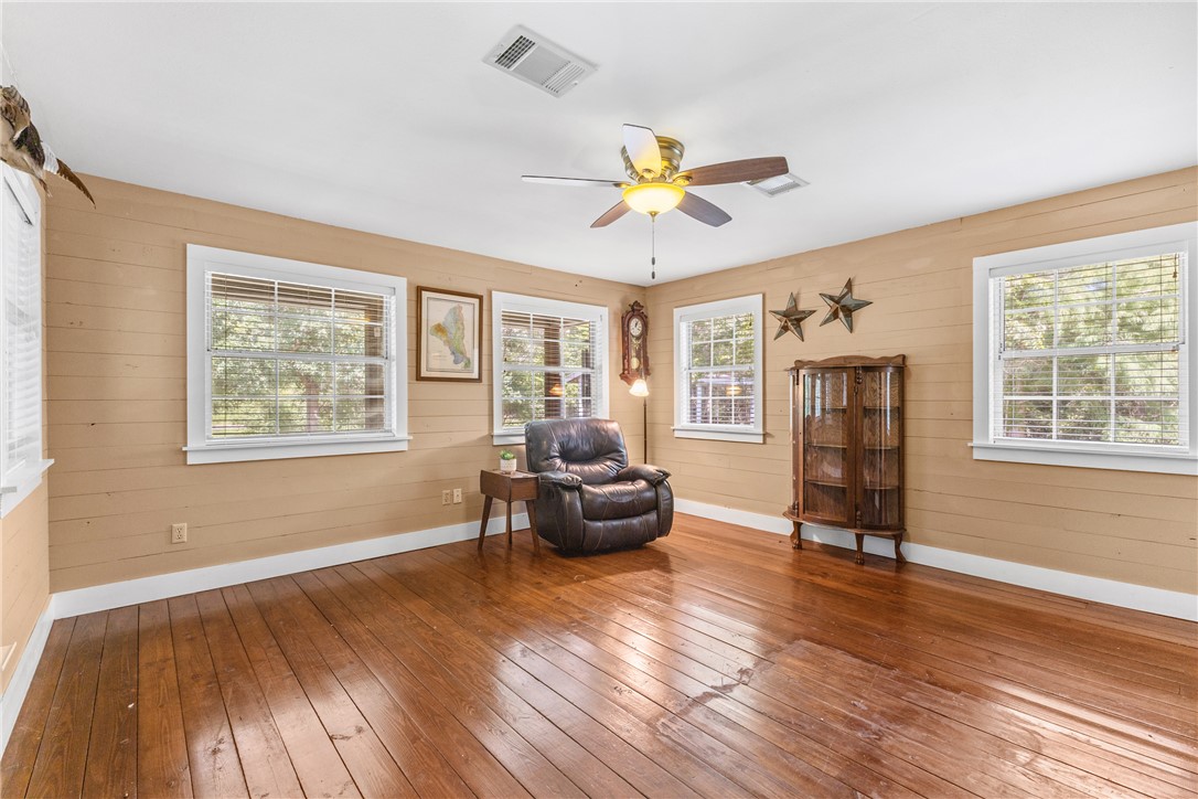 Nestled on 22 acres just outside of Bryan, the property is a nature lover’s paradise—surrounded by towering trees, peaceful ponds with wood ducks, and deer that wander through the land. Mornings are best spent with coffee on the covered front porch, while evenings invite you to unwind and soak in the quiet beauty around you.