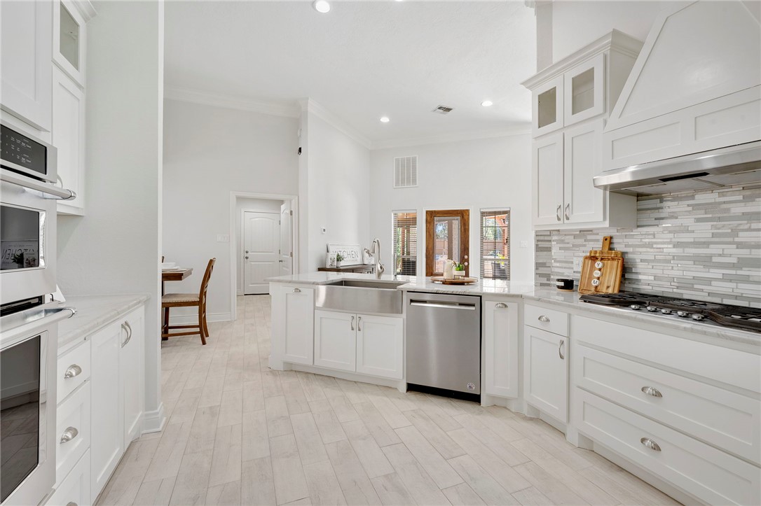 Discover this well-maintained oasis with abundant living space. The main brick house welcomes you with an open floorplan, featuring three bedrooms, two bathrooms, crown molding, soaring ceilings, new windows, and fresh paint throughout. The spacious living room flows seamlessly into the updated kitchen, which boasts new stainless-steel appliances, elegant countertops, modern hardware, and an extra-large pantry. Relax by the fireplace or enjoy the spectacular backyard, complete with an extensive patio, outdoor kitchen, fire pit, 8 ft privacy fence, and pool—ideal for entertaining. The climate-controlled attached garage offers a private interior staircase to a versatile apartment, including two multi-purpose rooms, a kitchenette, and a full bath. Exterior stairs lead to the backyard and a 288 sq ft Casita, great for guests or a home office. This unique property is sure to impress with its thoughtful design and exceptional amenities. Close proximity to College Station schools, medical facilities, restaurants, and shopping. Minutes from TAMU.