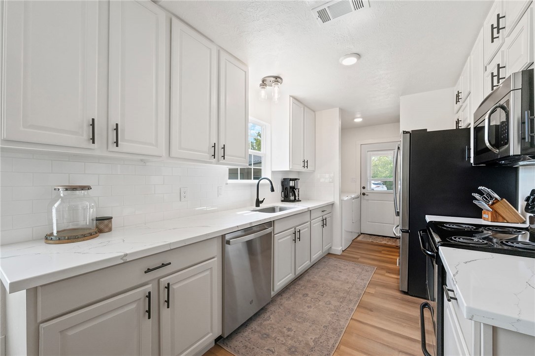 THIS IS THE DREAM: Completely updated house, on one acre, with an awesome huge shop and lots of covered patio space to enjoy the outdoors! Beautifully updated paint and luxury vinyl plank flooring throughout feels inviting, airy, and classy. Cozy living room with vaulted ceiling is the heart of the home, and check out this stunning kitchen! Stainless steel appliances, quartz countertops, white cabinetry, and a well-lit dining area might just be a chef's dream! Primary bedroom includes an ensuite bathroom with a wood-look tiled glass shower and spa-like vanity with lots of storage. This split bedroom plan features two nice bedrooms with their own bath on the opposite side of the house! The house is awesome, but the best part might be the 40x40 Workshop with an expansive 12x40 patio. We can't forget about the storage building or the chicken coop, which both stay! HVAC (2016) New Septic (2021) New Roof (2020) New Workshop (2025)
