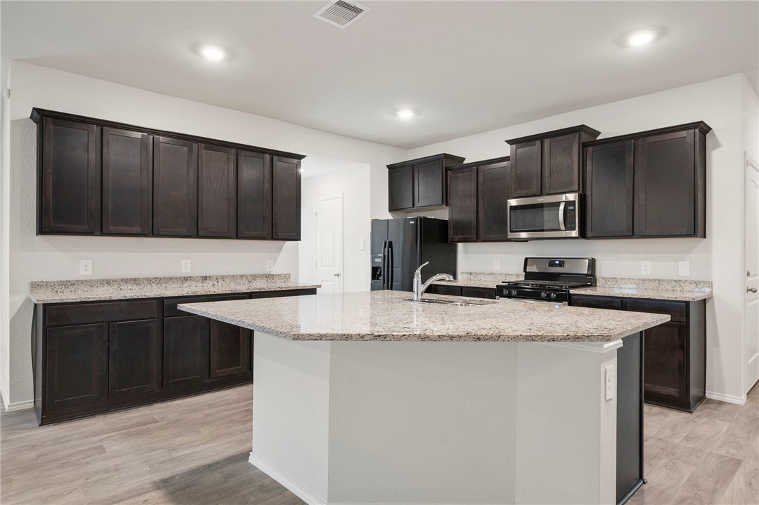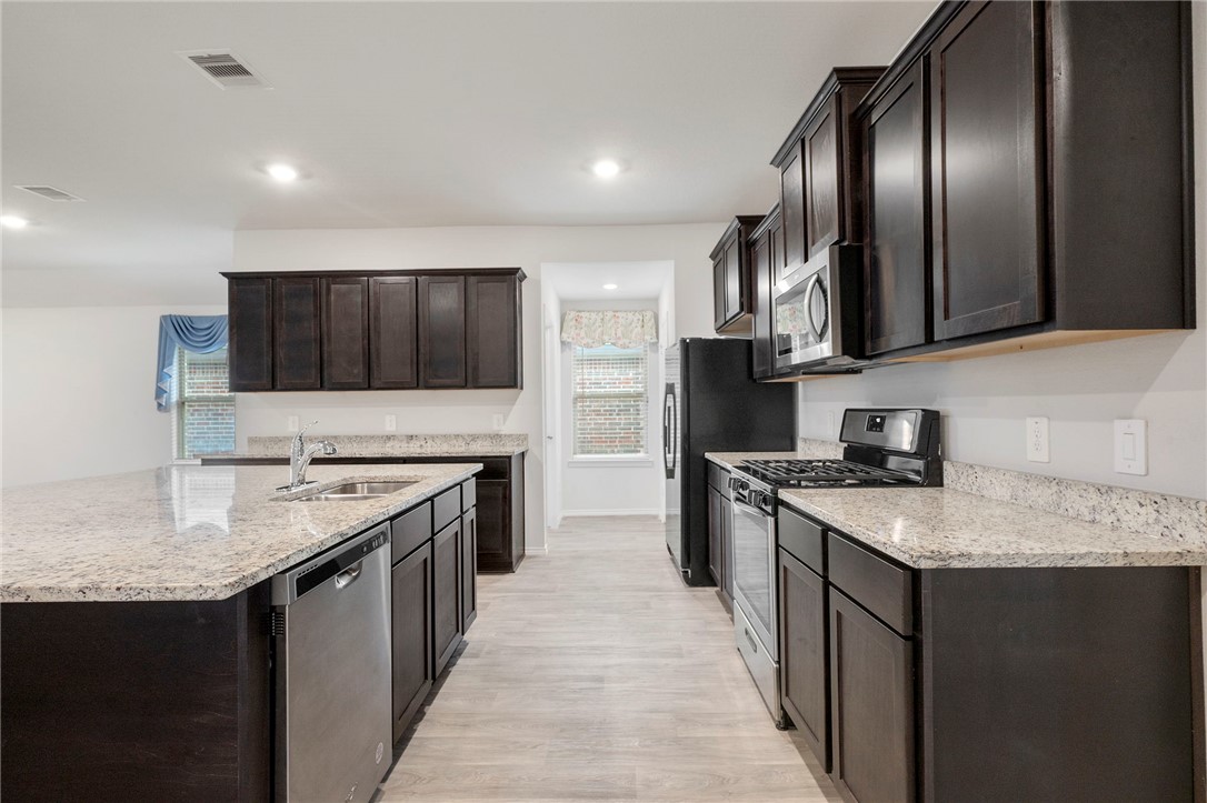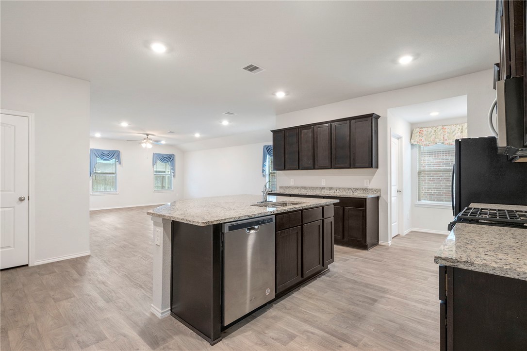 Welcome home to this charming 4-bedroom, 2-bath retreat nestled in the back of the desirable Pecan Lakes neighborhood within the growing Navasota community. The thoughtful three-way split floor plan provides privacy for everyone, while the spacious primary suite is tucked away in the back corner of the home and features an oversized walk-in shower and a generous walk-in closet. At the heart of the home, you’ll find a bright and open kitchen boasting abundant cabinetry, a HUGE single-level island great for cooking and gathering, and a refrigerator that conveys. Enjoy relaxing or entertaining outdoors with a covered back patio and fully fenced yard. This move-in ready home has been freshly deep cleaned and is waiting for its new owners!