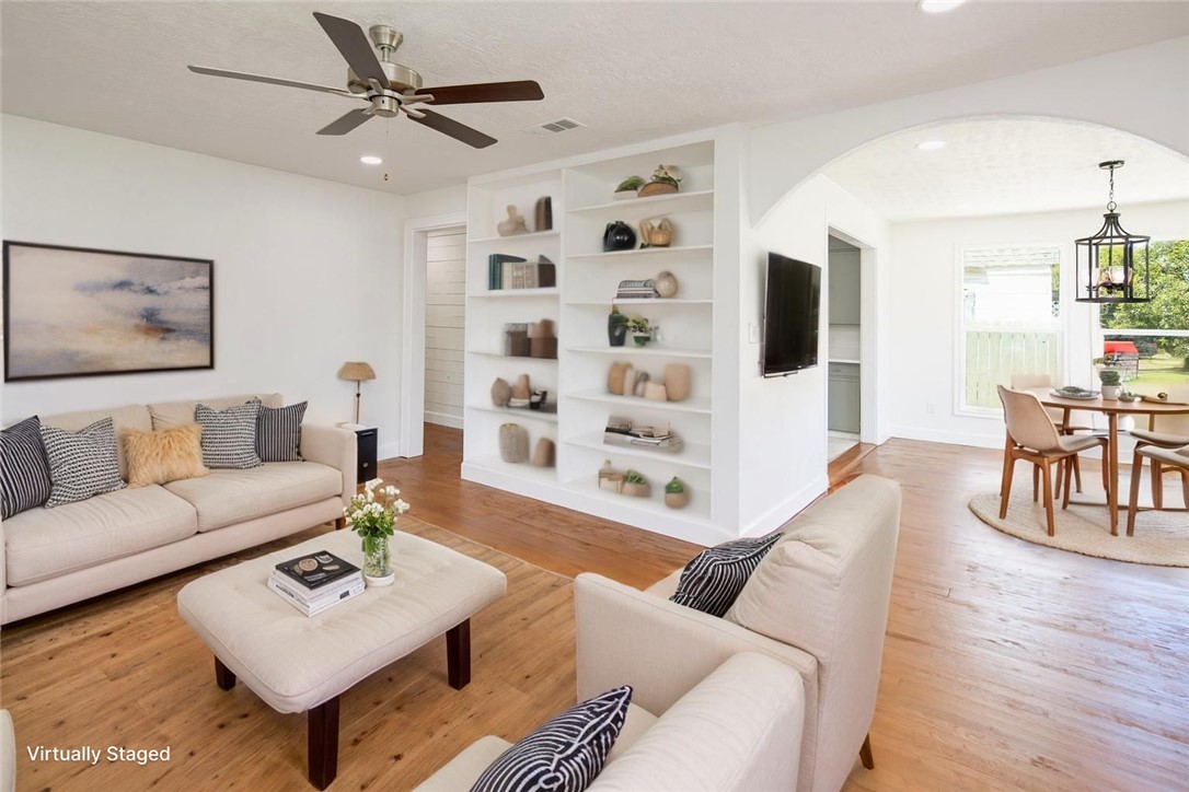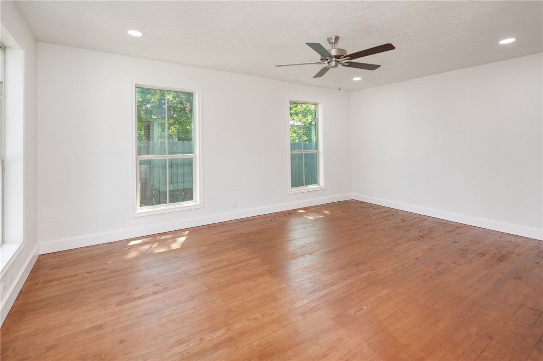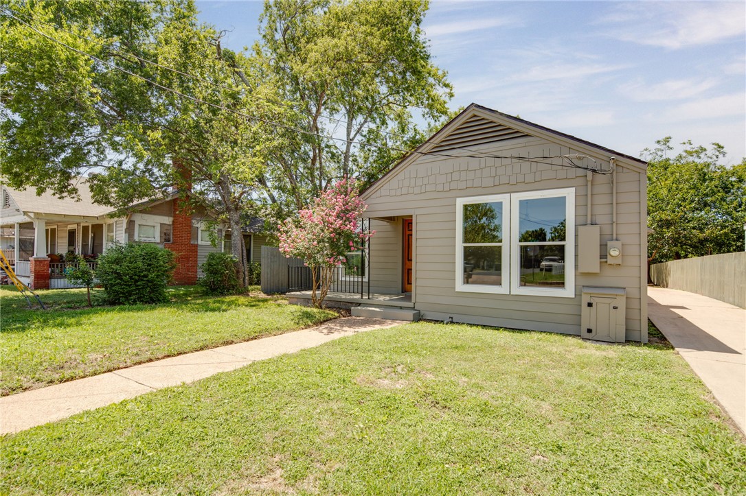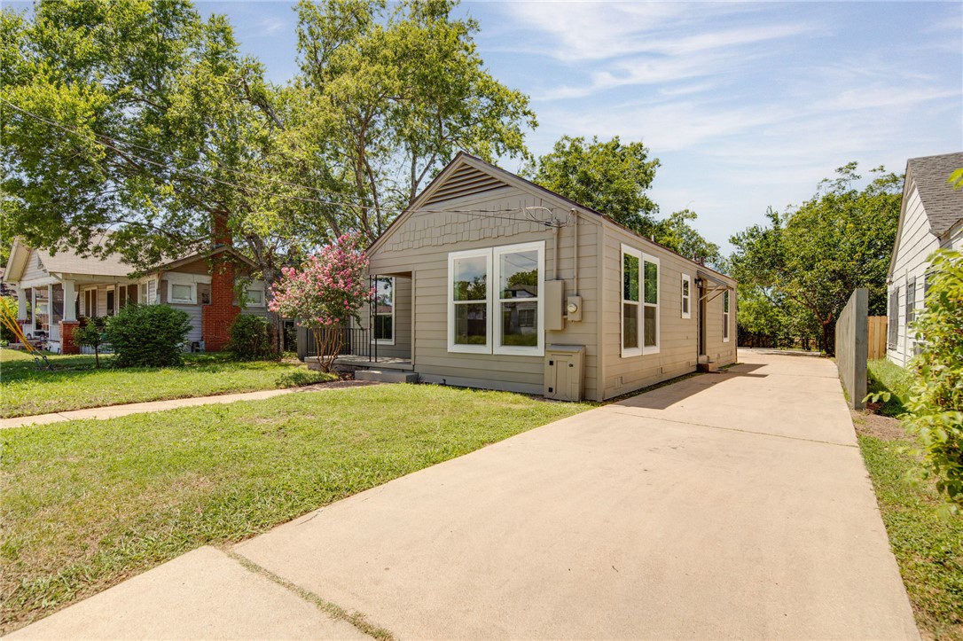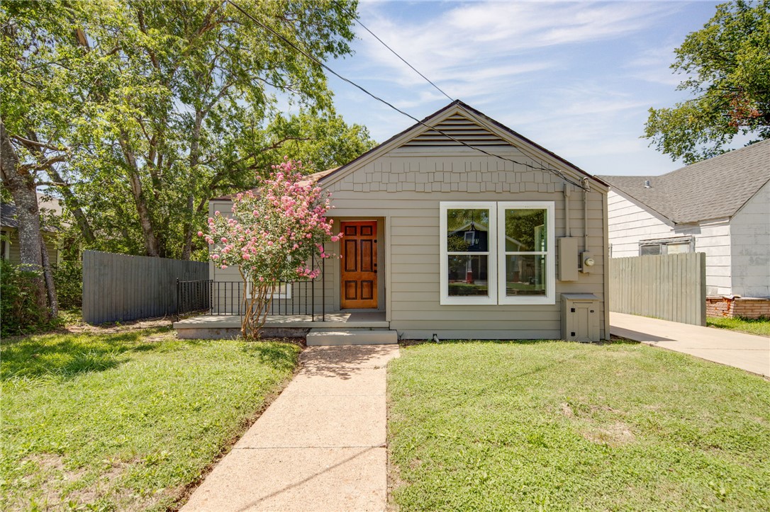 Introducing 814 Beck, a renovated residence located one block from the desirable South Downtown Bryan District. This home enjoys walkable access to coffee shops, restaurants, bars/music venues, retail shopping and public parks. The recent renovation was a comprehensive overhaul to the structure, operating systems, and interior finishes of the home. Built in 1950, this property retains its historic charm merged with modern living conveniences. The front walk leads you to the front porch featuring original ironwork and heart-pine front door. Upon entry into the living room, you immediately notice the light airy feeling of the space. Beautifully refinished solid wood floors grace the living, dining, hall and back bedroom. Complete with a spacious dining room that will easily seats 6 to 8 guests it is perfect for entertaining or family time. The kitchen with quartz counters, marble look flooring, stainless appliances, and a new built-in washer dryer cabinet area is a rare find for homes of this era. Tucked privately in the rear of the home are three spacious bedrooms, all with en-suite closets, and a large shared bathroom with tub shower, linen and decorator vanity. The renovator took care to retain some of the original lapped wall wood adding that vintage flair. The exterior boasts new windows and Hardie Plank siding, making maintenance simple. Do not miss the exceptionally large fenced backyard and huge concrete parking area. Do not miss this rare listing!