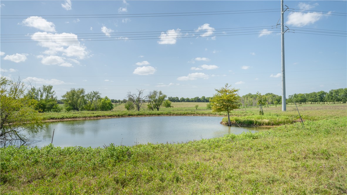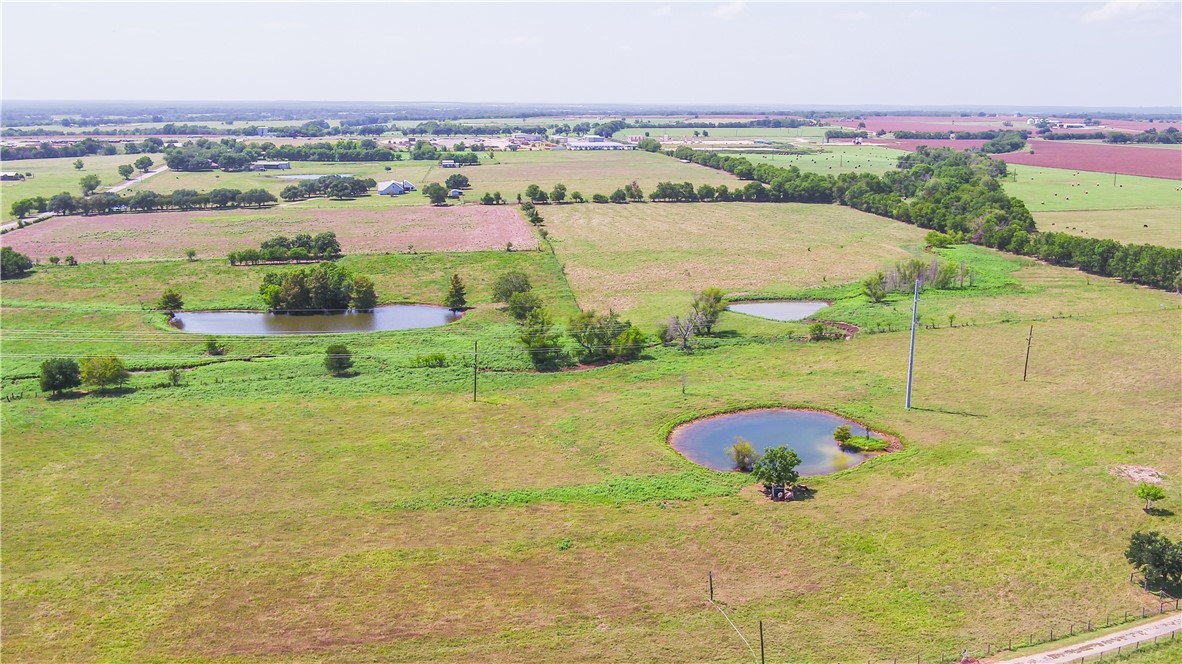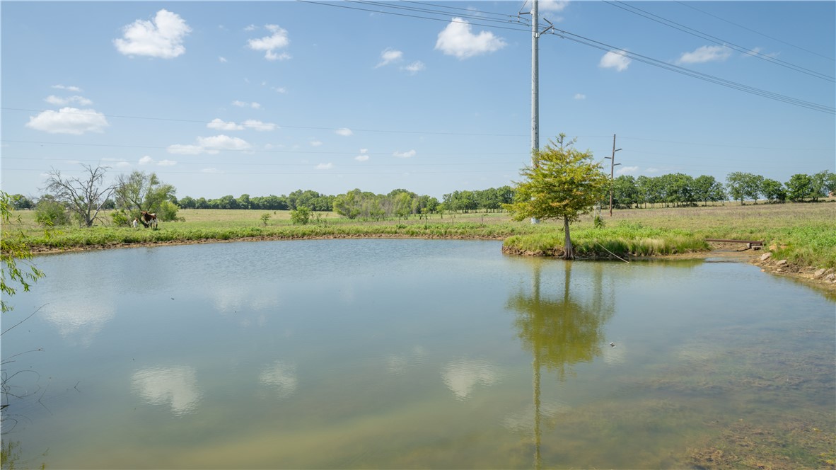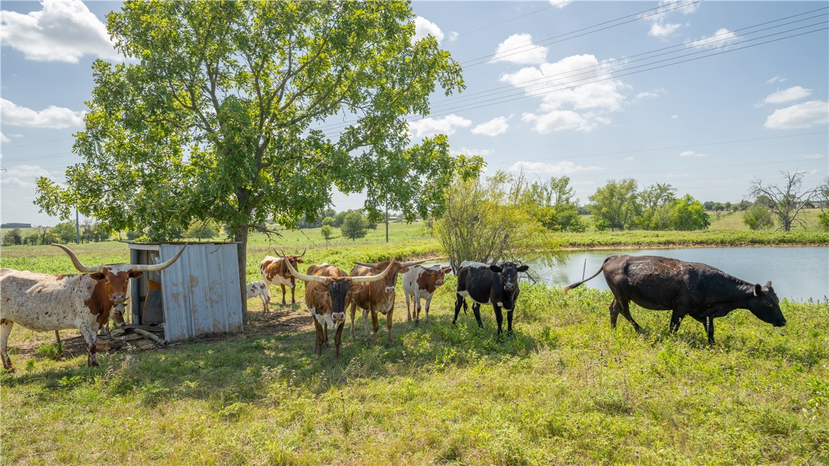 An ag exemption is in place, leading to low taxes and it's currently being used for cattle. It's mostly open, with some trees dotting the area around the ponds and creek as well as the county road.