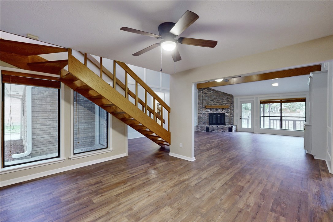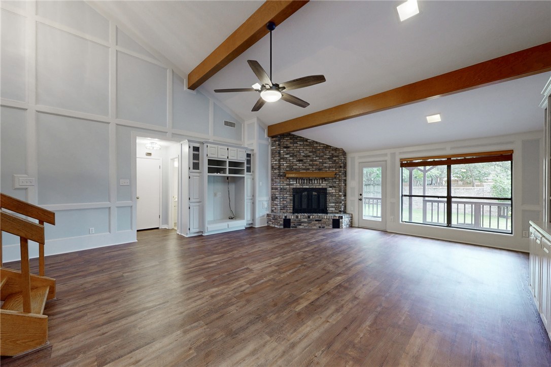 Welcome to this inviting 3-bedroom, 2.5-bath home perfectly positioned on a tree-shaded lot in the Emerald Forest subdivision. Located just minutes to Texas A&M University, this home sits in one of College Station’s most coveted neighborhoods. Step inside to soaring ceilings accented with exposed wood beams and window lined walls that fill the home with natural light. A corner fireplace anchors the living room, creating a cozy focal point, while chair molding adds a refined touch of character. The kitchen is spacious and bright offering a refrigerator, an electric cooktop, built-in microwave, and dishwasher. Abundant cabinet storage ensures everything stays neatly organized, while under-cabinet lighting adds a touch of charm. The adjoining breakfast room lends itself to casual dining, highlighted by a side bay window which over looks the back deck. The primary bedroom offers generous space, but its the ensuite bath that truly impresses. This private retreat is complete with an expansive walk-in closet, two separate vanities, linen cabinets, a whirlpool tub, a spacious shower and a skylight that fills the room with natural light. Upstairs you'll find 2 spacious bedrooms, a study and a full bathroom. The backyard offers a covered back patio and large deck, ideal for entertaining or quiet evenings outdoors. As a resident of Emerald Forest, you’ll enjoy access to a community pool, park, and tennis courts. Tour today!