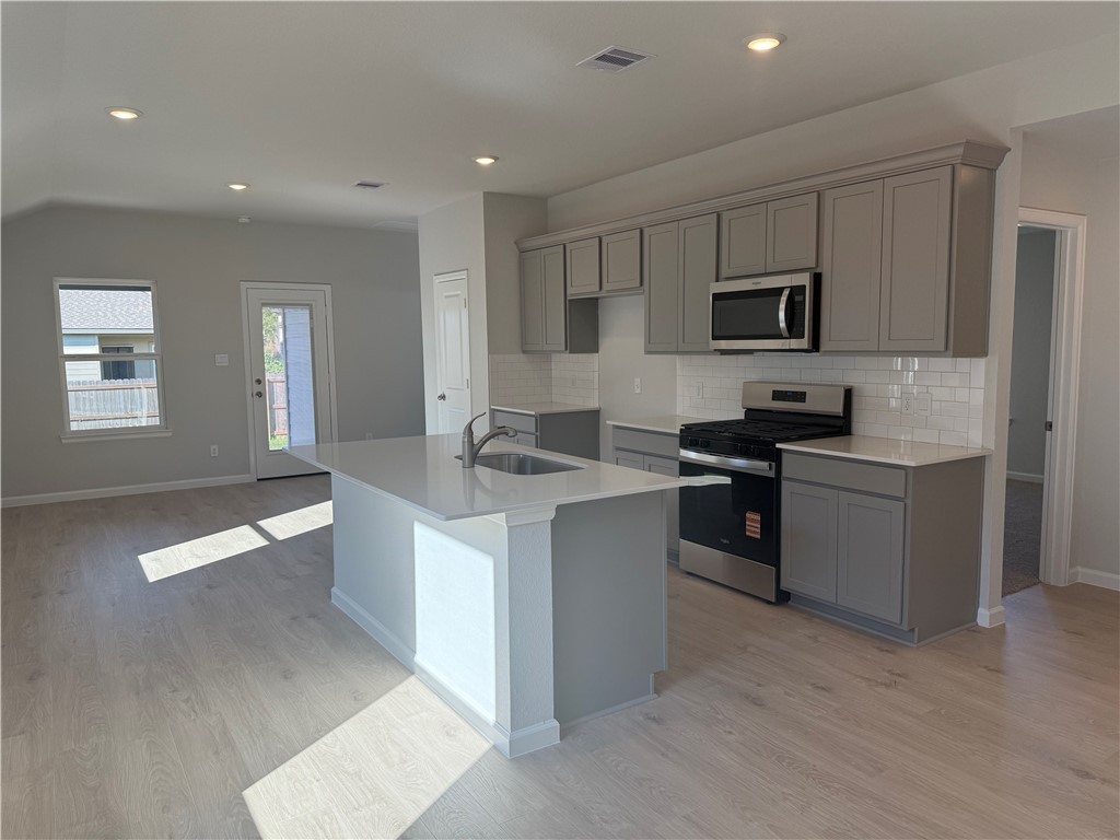 The Brooke is a single-story, 3-bedroom, 2-bathroom home that features approximately 1,391 square feet of living space. This home has an open entrance leading to the large living room open to the kitchen and dining room. The kitchen features a large breakfast bar and pantry. Our homeowners can enjoy the oversized main bedroom with a large walk in closet and spa-like bathroom. Additional modern finishes include subway tile backsplash, quartz countertops and stainless-steel appliances.