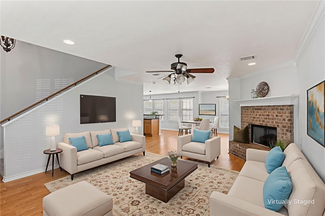 Nestled in the heart of College Station, this delightful 4-bedroom, 2.5-bath home offers classic appeal, a second living area and many recent updates throughout. This home is not to be missed! Step inside to find the downstairs living area featuring a gas fireplace, abundant natural light and a layout ideal for entertaining. The kitchen is equipped with stainless appliances, granite counters, ample cabinetry, a convenient island with breakfast bar for casual dining and an adjoining dining area. Upstairs you will find all bedrooms and a spacious second living room. The primary suite provides a tranquil retreat with a generously sized bedroom, large walk-in closet, and en-suite bath featuring dual vanities, a soaking tub, and separate shower. Three additional bedrooms offer nice sized closets and spacious sized rooms with easy access to a recently updated full bathroom. Outside, enjoy the privacy of a fenced backyard with a playscape and a spacious yard—ideal for leisure or recreation. A patio invites outdoor dining and lounging, creating an inviting extension of the home's living space. The property also features a two-car garage offering ample storage, a laundry room with a folding table, and a downstairs half bathroom for guest use. Located close to local amenities, walking distance to schools and parks, this residence promises both a prime location and a comfortable lifestyle. Recent updates include: roof '22, water heater '22, HVAC '24, dishwasher and microwave '25.