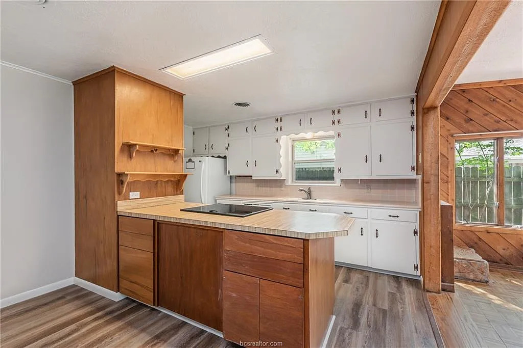 AVAILABLE IMMEDIATELY! Nestled near Texas A&M University in College Station, this charming 3-bed, 2-bath brick home combines classic appeal with modern comforts. Inside, a wood featured living room with a wood burning fireplace creates a cozy atmosphere, complemented by stone accents and ample natural light. There is a living/office area with built-in storage and a desk as well as an extra living area off the kitchen. The backyard has an amazing wooden deck and covered patio!