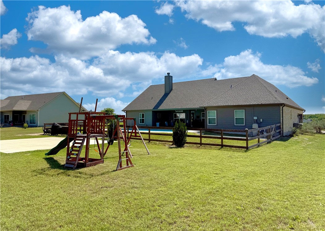 Beautiful custom 2,707 sq. ft. 4 bedroom 3 1/2 bath home built in 2019 with Limestone and Hardi exterior located on a one-acre corner lot in the Hickory Ridge Subdivision just outside of Franklin. This all-electric high energy efficiency home has spray foam insulation, LED lighting, and Low-E vinyl frame windows. The kitchen has granite countertops, a walk-in pantry, built in convection oven, microwave, dishwasher, and island with a dining bar. The home has an open concept living area with a wood fireplace adjoining the kitchen and breakfast/dining area. The split floor plan has the master suite with its spa-like 4’x9’ walk-in shower, double vanity and two large walk-in closets as well as the laundry room and half bath on the North side of the house near the kitchen and garage. There is also an upstairs 25’x12’ bonus room with full bath. On the South side of the home, are the 3 additional bedrooms and a full bathroom. Additional features are insta-hot at kitchen sink, a coffee bar, strip-vinyl wood grain floors throughout with tile floors in the full baths, ceiling fans, and the attached two car garage has auto openers, room for storage shelves and a spare freezer or two and a washed gravel driveway. Step out the back door to a covered patio with an in-ground saltwater pool, fenced backyard, basketball court, and playset. All in Franklin ISD, one of the top school districts in the state.