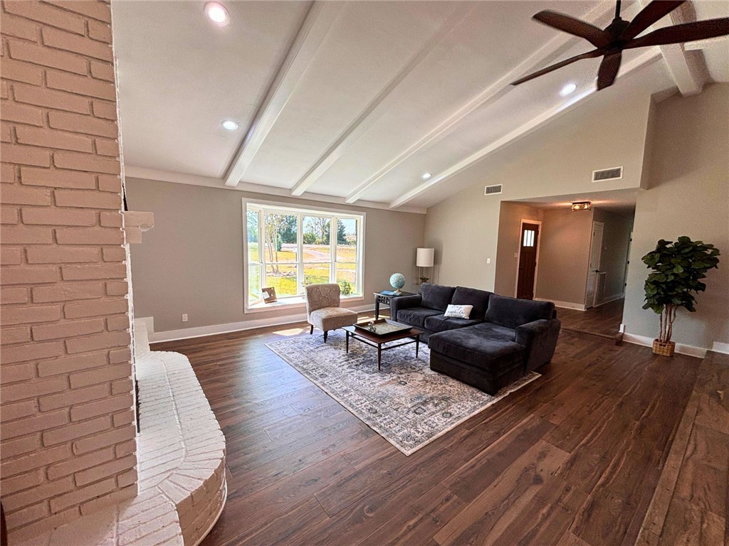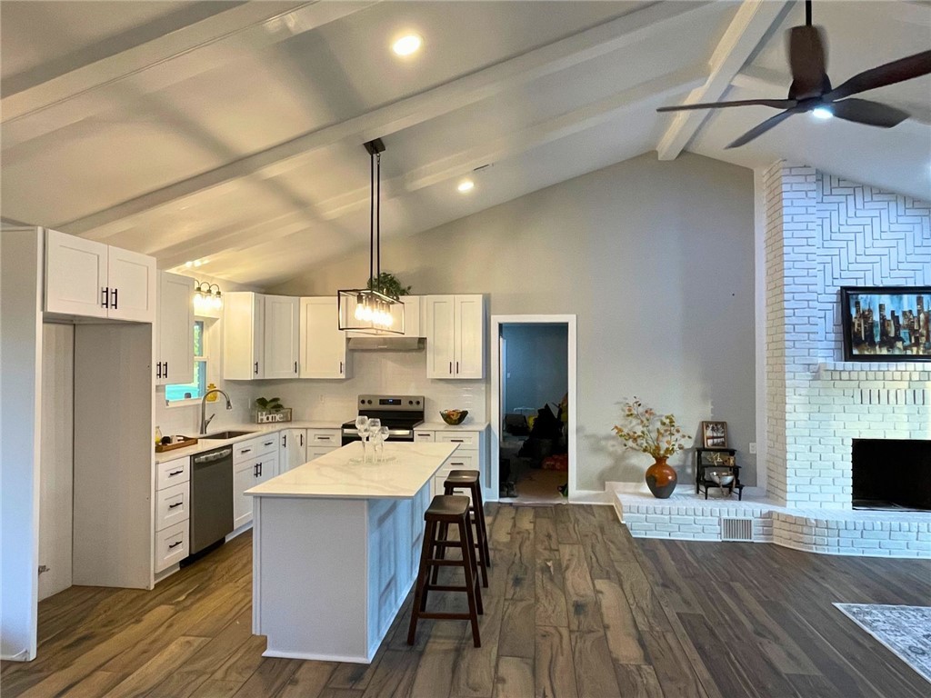 The open layout connects a bright living room with a spacious chef’s kitchen and dining area, perfect for family gatherings or weekend entertaining. Three full baths, generous bedrooms, and plenty of natural light make daily living comfortable and functional.