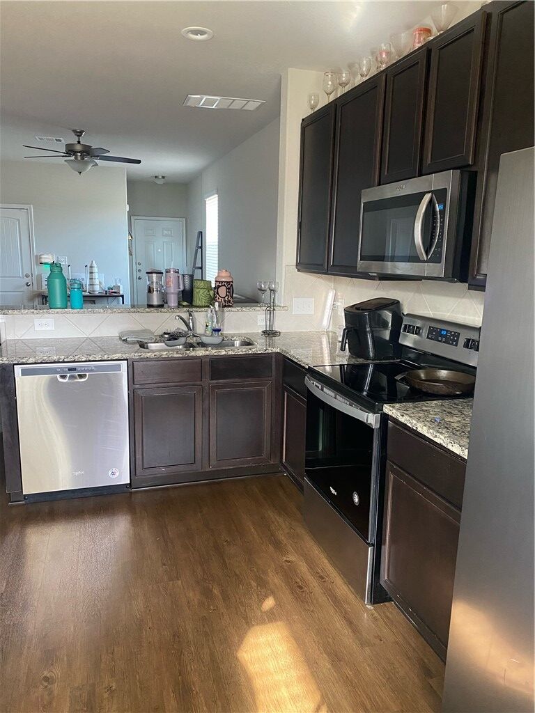 TWO STORY HOME WITH 4 BEDROOMS AND 2.5 BATHROOMS. THE KITCHEN HAS 42"CABINETS, TILE BACKSPLASH AND GRANITE COUNTERTOPS. THIS HOME ALSO FEATURES 3 BEDROOMS UPSTAIRS WITH A FLEX ROOM. VINYL PLANK FLOORS, BLINDS AND A COVERED PATIO ARE INCLUDED!