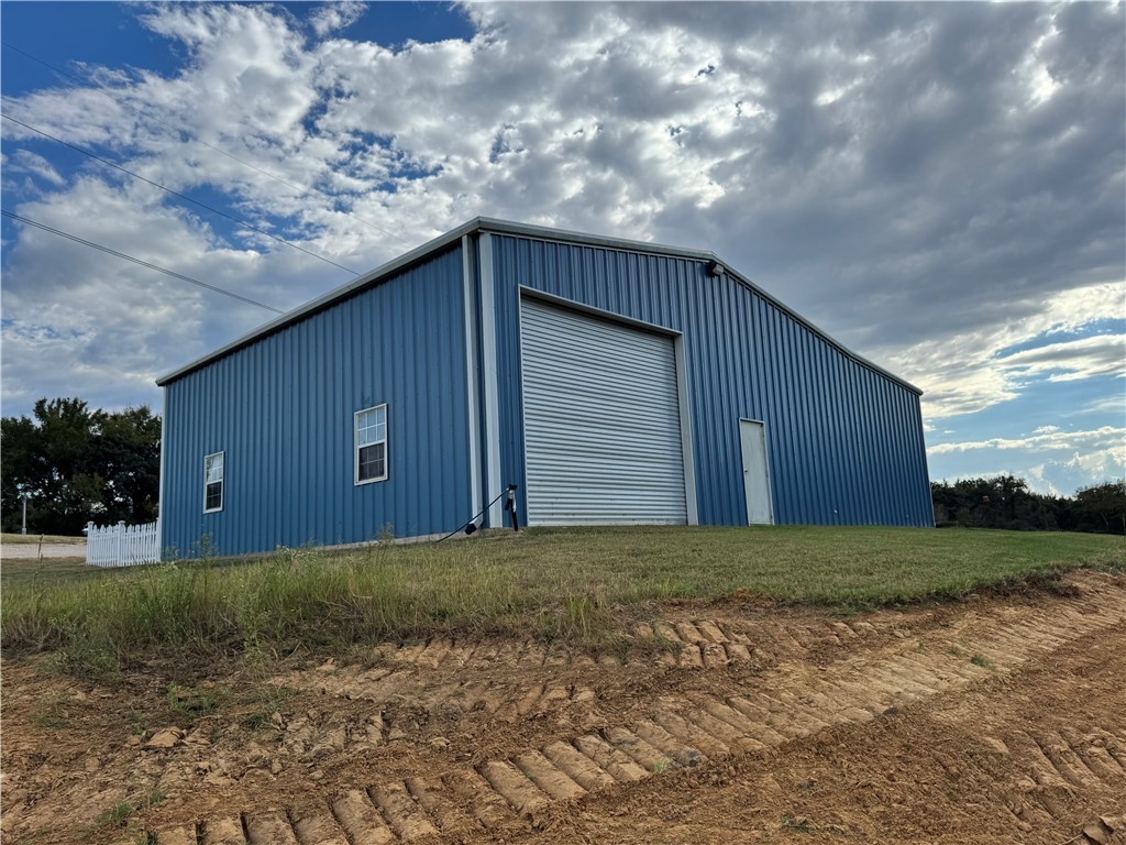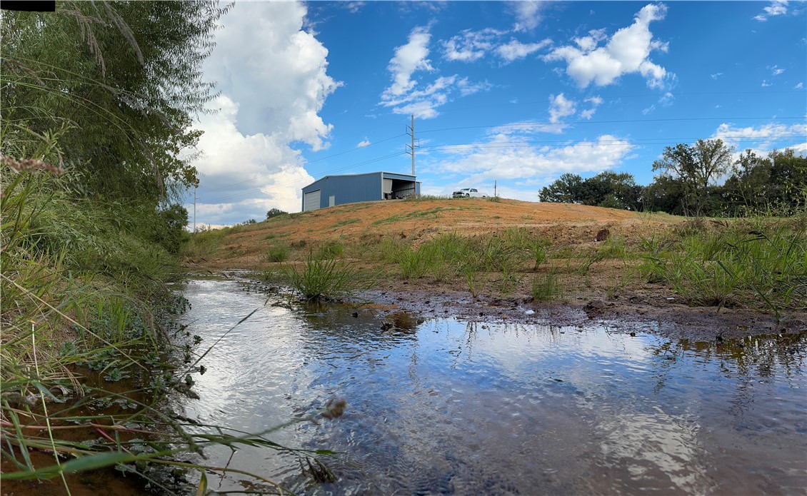 Less than a mile outside of Franklin on paved county road, this unique 5.168 Acre hillside property runs alongside an electric transmission line easement and overlooks a live creek (with fish!) running the full length of the right side; it also has a small pond filled by a spring and is open but mostly encircled by trees around the perimeter. The 2,500 square ft. Barndominium style home with electric central HVA/C, was built in 2021. It has an open floor plan with polished and epoxied concrete floors, 1 bed and 1 bath with a large tiled shower, a 600 square ft. back porch , a kitchen with large industrial metal island with bar area and kitchen cabinets with wood butcher block tops fashioned from rolling metal tool cabinets accented with aluminum diamond plate backsplash. On the creek side of the home is a large roll up door. It has a small yard enclosed by a white picket fence, Robertson County Water meter, Navasota Valley Electric meter, aerobic septic system and is in Franklin ISD. Furnishing and appliances including washer and dryer are available for purchase as well. Offered at $335,000.