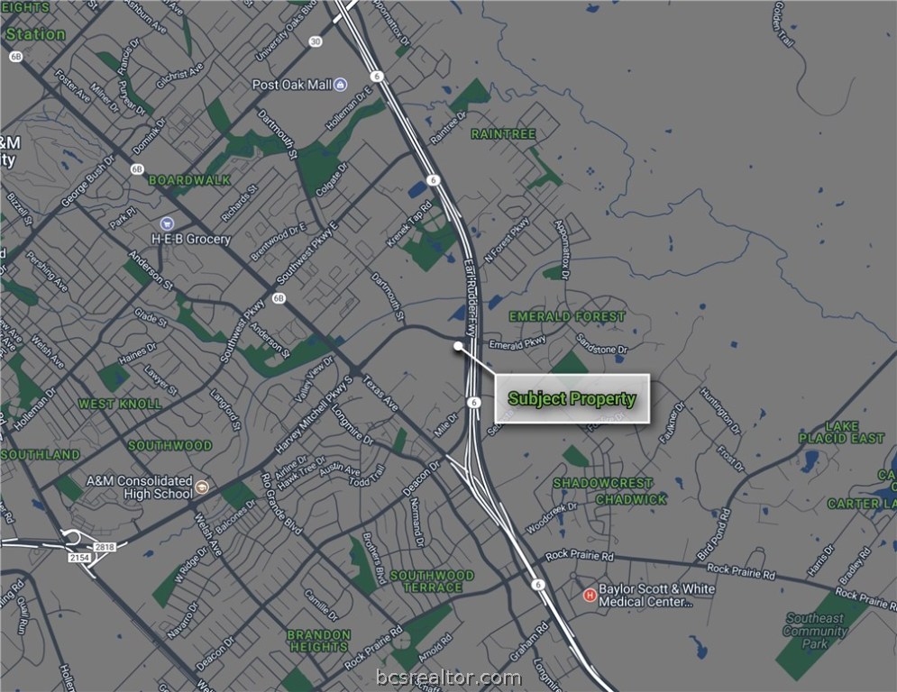 - Directions: Head south on Highway 6 towards College Station, exit Harvey Mitchell, property will be in front of you near the corner of Harvey Mitchell Parkway and Highway 6