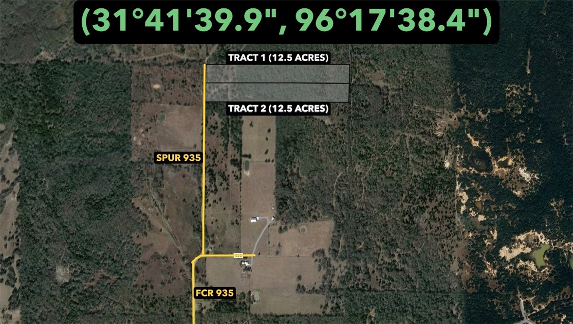 • Directions: From hwy 80 and county road 930, take a left on freestone county road (FCR) 930 and travel east approximately 1.4 miles. Turn left and travel north on FCR 935 for approximately .7 miles then turn left on to spur 935 (rock road). Travel approximately .1 miles and property will be on the right.