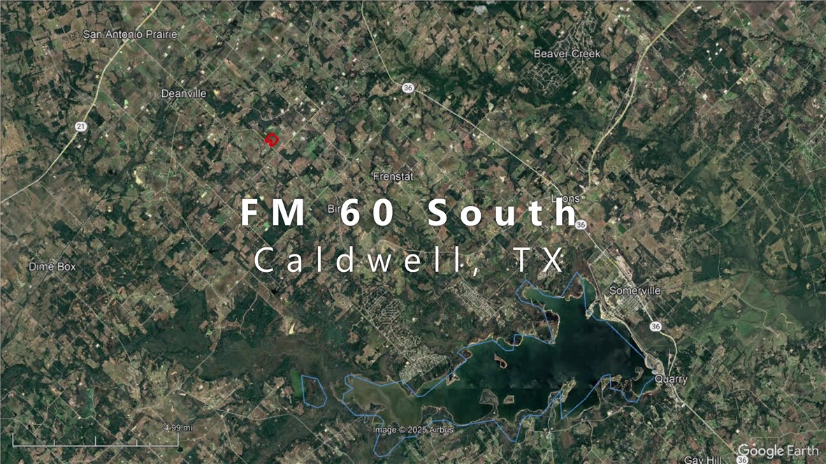 - Directions: If heading North on Highway 36 from Houston, from the intersection of Highway 36 and FM 976 in Somerville, turn left onto FM 976. Turn right onto FM 60, travel on FM 60 for approx. 2.2 miles (you will go past the intersection of CR 127 and FM 60). Property will be on the right.