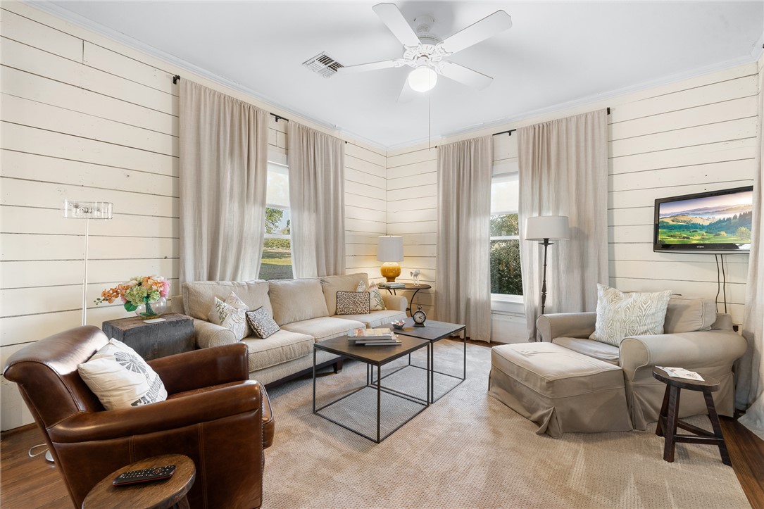 Built in the early 1900s, moved in 1982, and beautifully restored in 2009, this farmhouse was featured in Paper City Magazine by designers seeking a Round Top?area retreat. The 4/2 home blends historic charm with modern comfort, showcasing original hardwood floors, shiplap walls, and expansive screened porches overlooking Washington County''s rolling hills. A spacious insulated, air-conditioned workshop (added in 2019) is perfect for hobbies, vehicles, or storage. Contents negotiable; some exclusions apply. Home is set on 5 peaceful acres along quiet Valley View Lane?close to town yet private with no through traffic. The full 30-acre tract offers road frontage on Meyersville and Valley View, scattered trees, a large pond, partial ag exempt for cattle, multiple build sites, and stunning views. Truly a must-see!