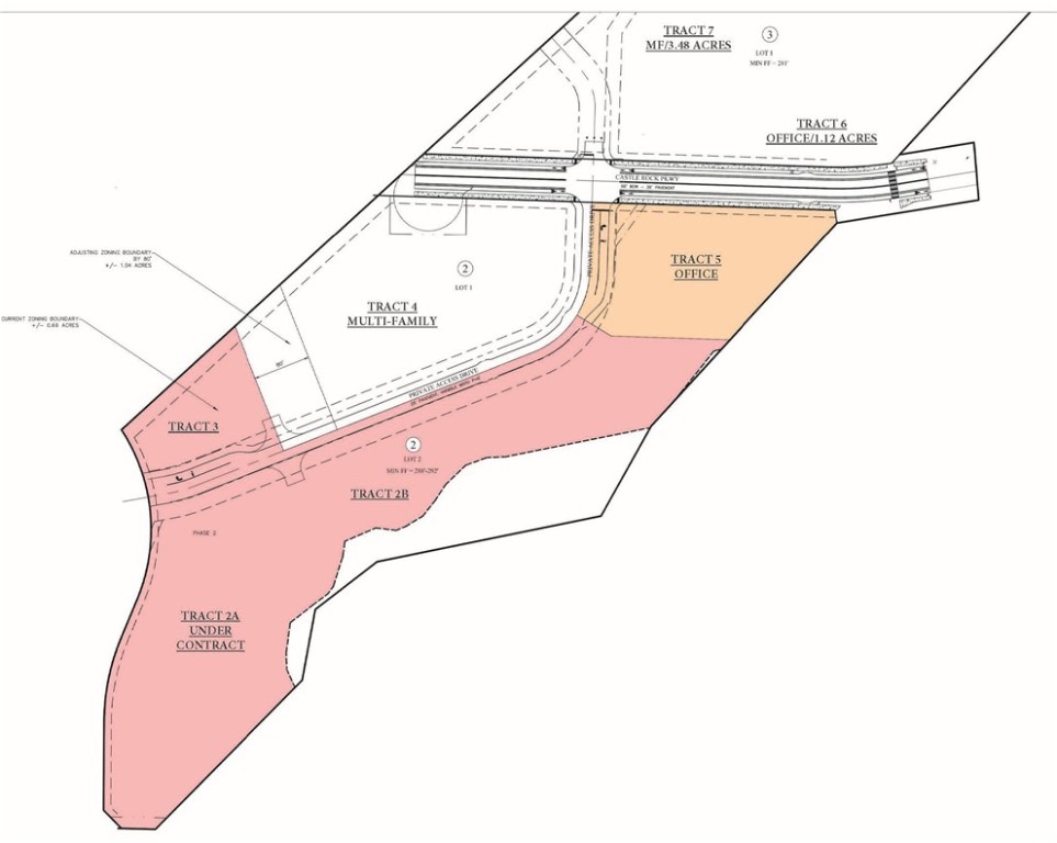 Land is cleared and major roads are in. Water, sewer, electricity and gas are located on site. Detention pond is located off site for all tracts. Other tracts on this property (commercial, multi-family and office) are now available and listed separately.